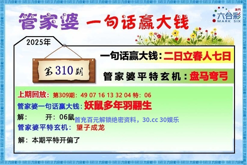 | 312期:一码三中三 | 312期:①尾中特码 |